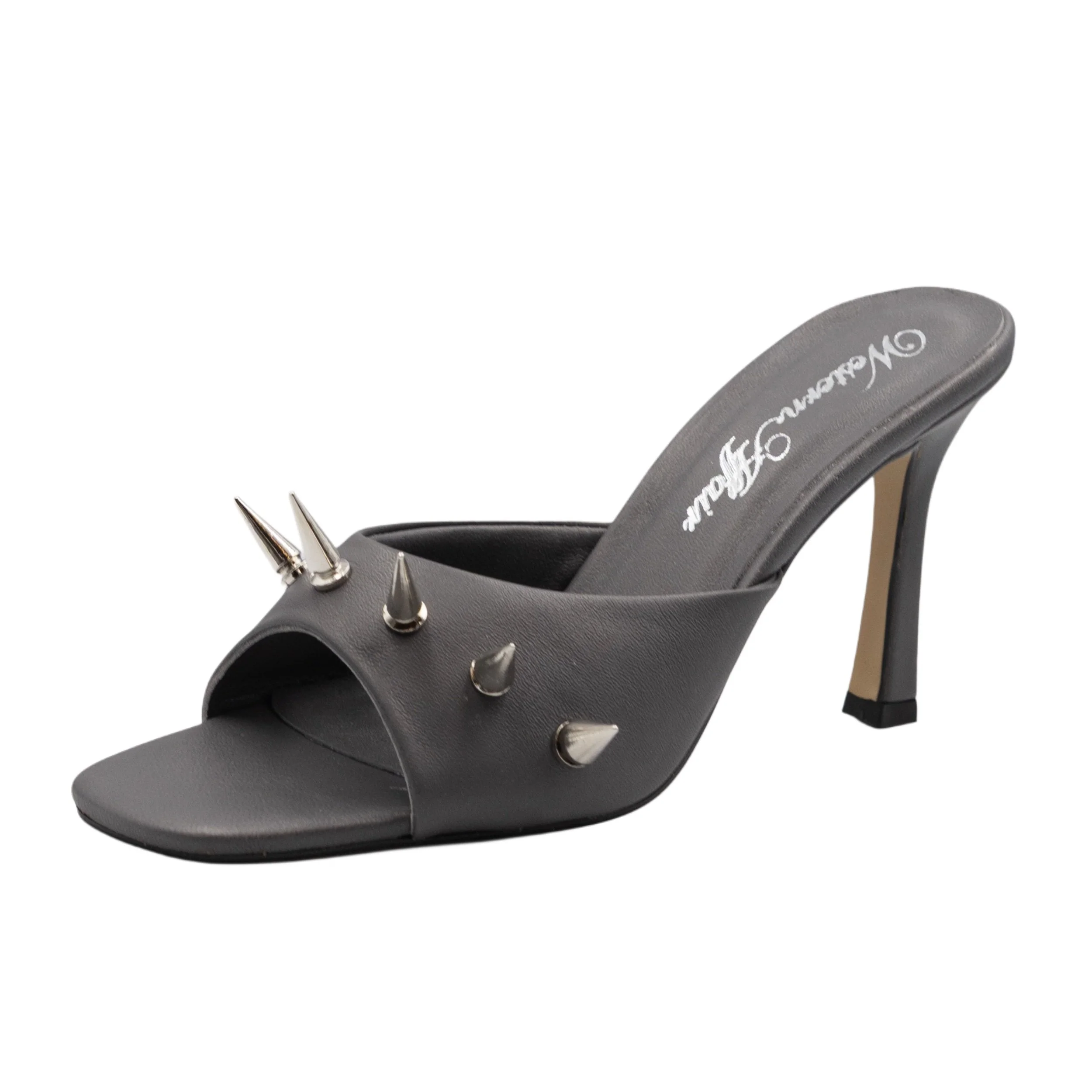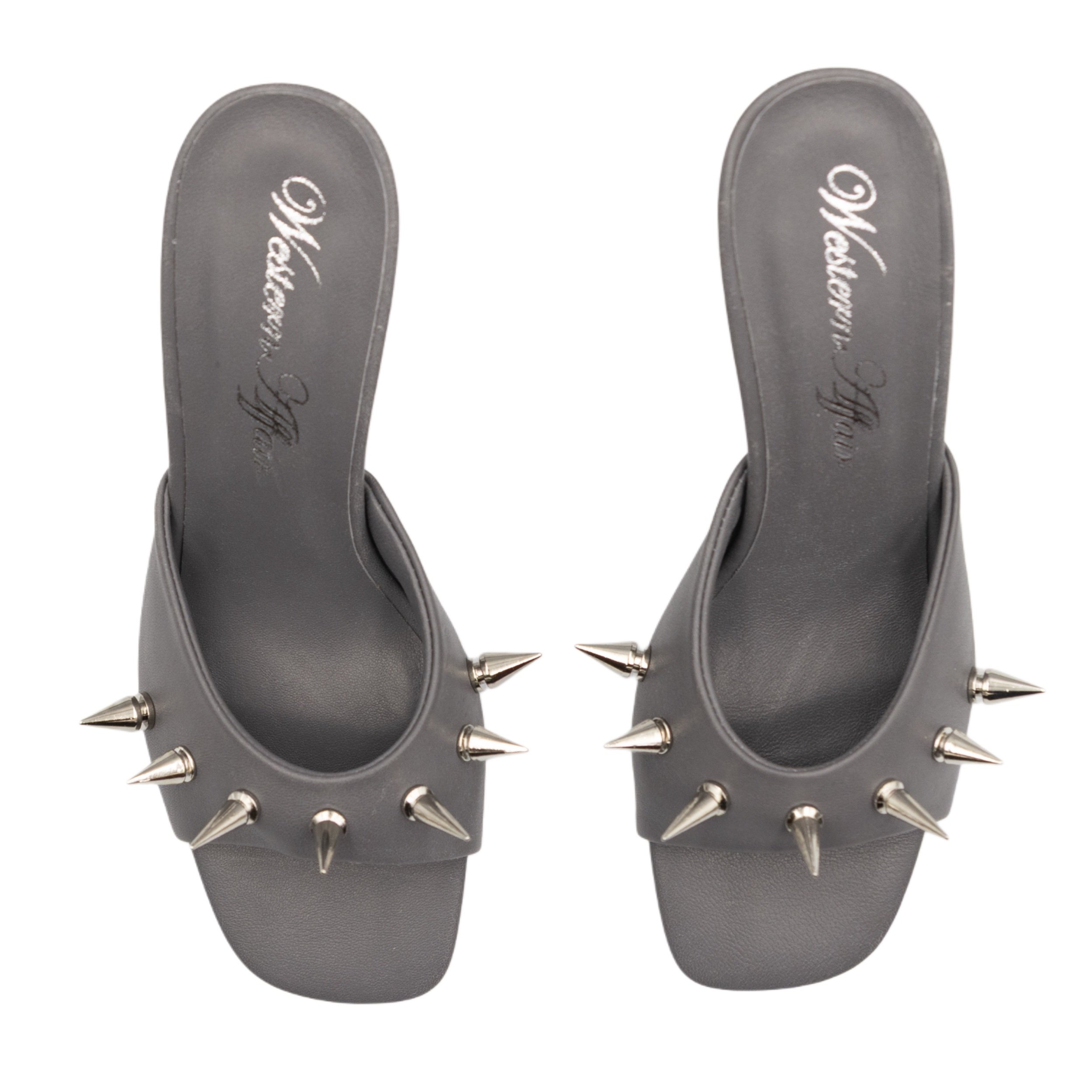 made from deadstock Italian cow leather in grey colour