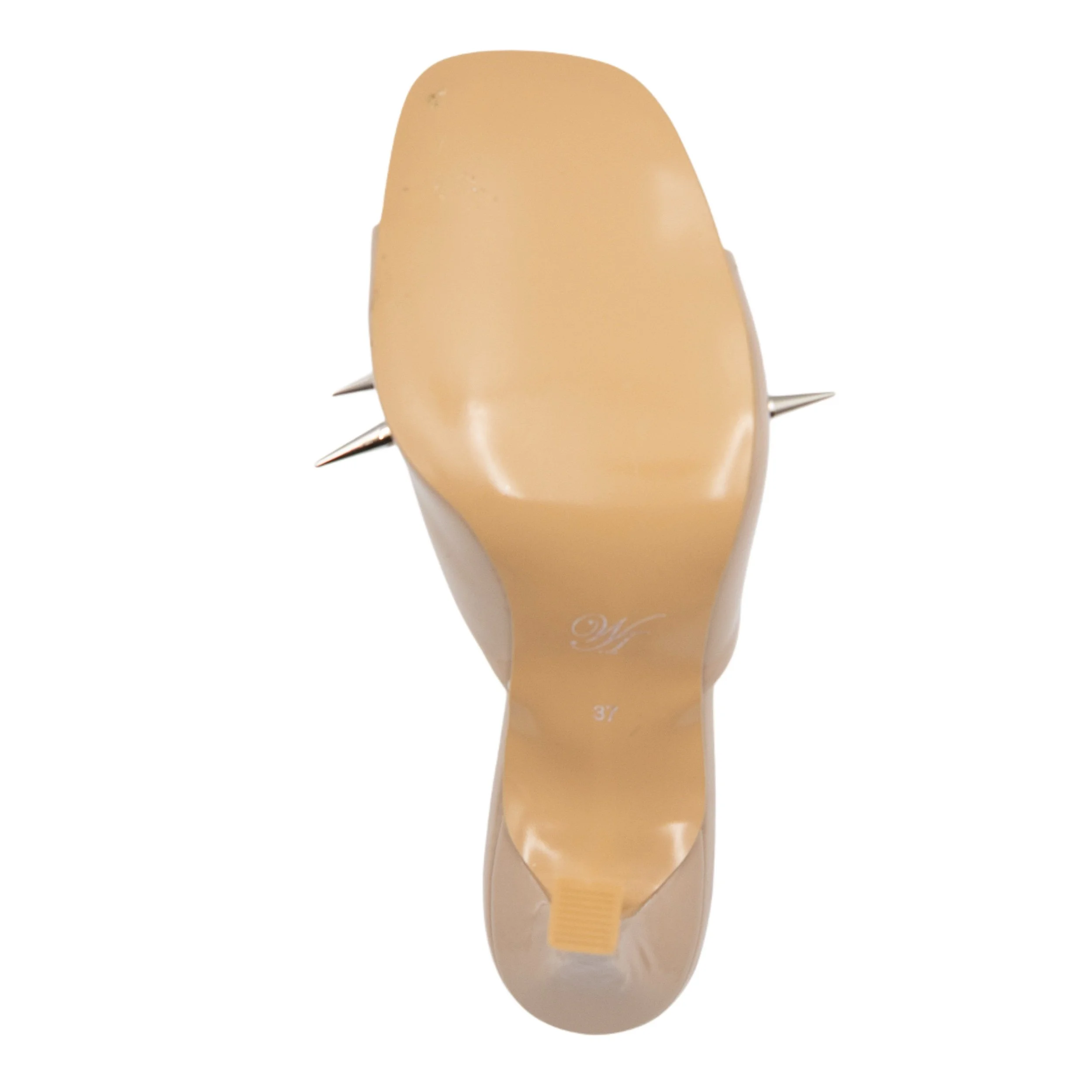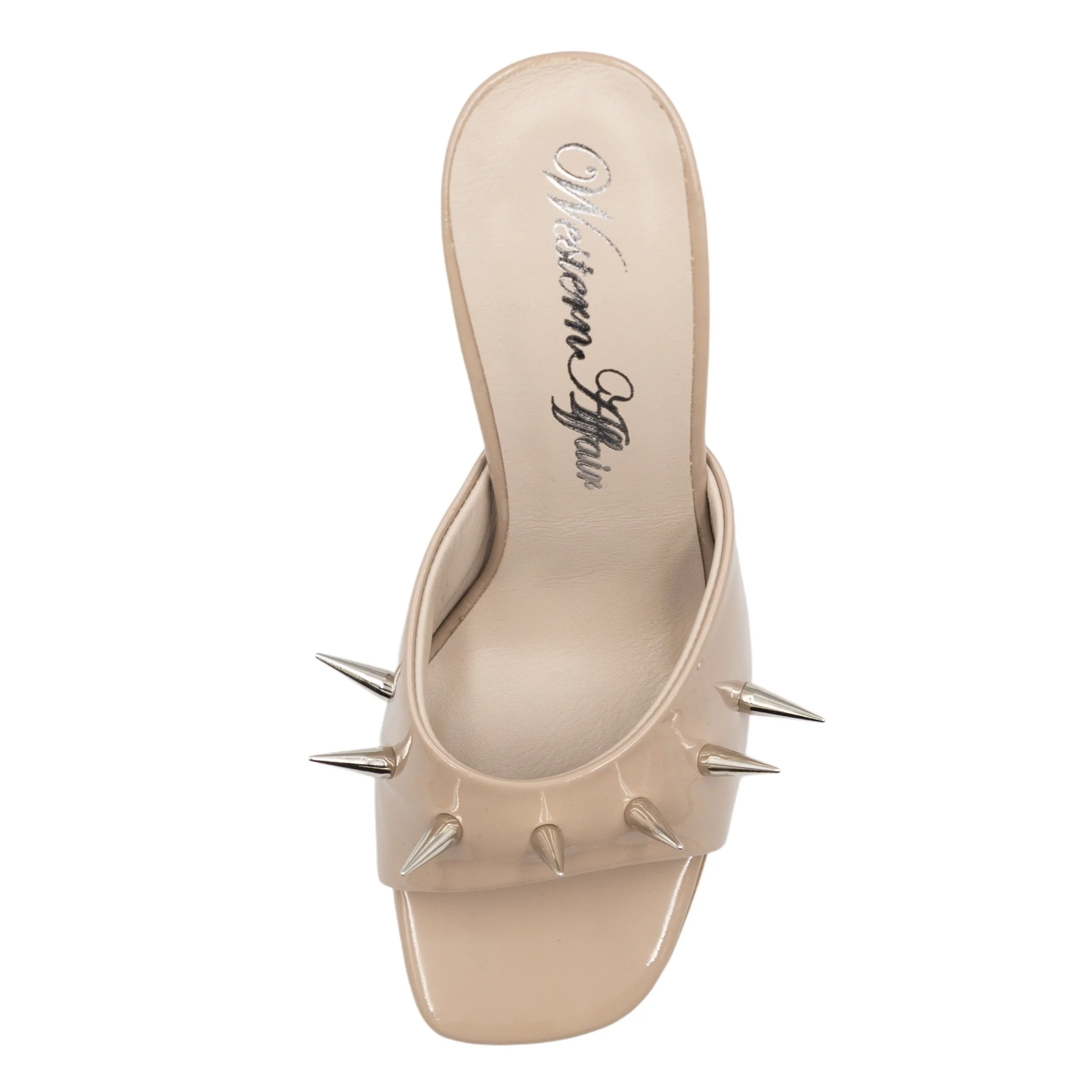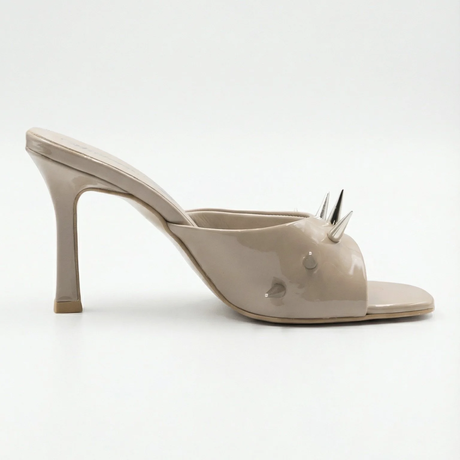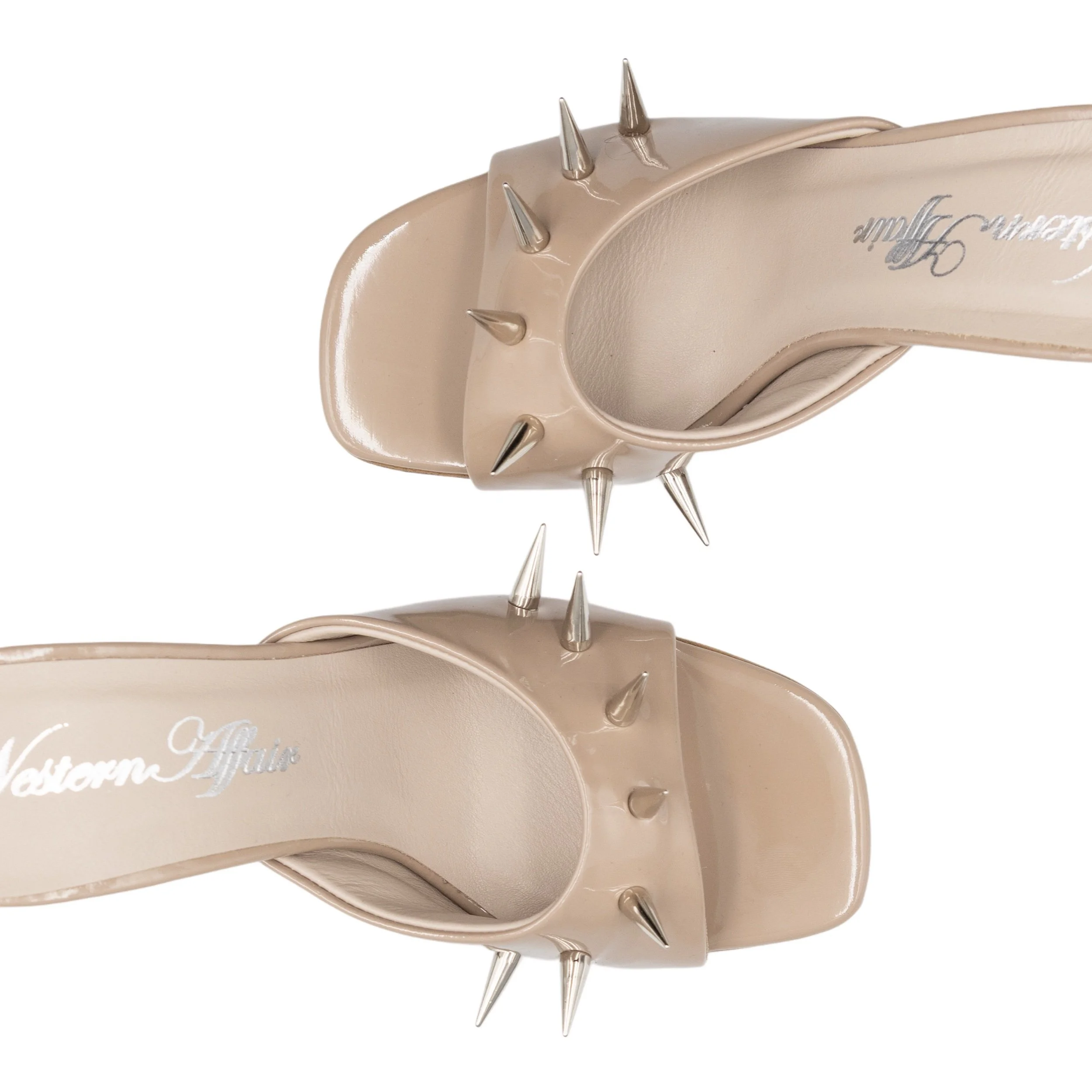 made from deadstock Italian cow leather in patent beige colour